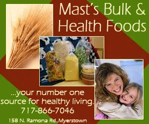 Mast’s Bulk and Health Foods is located about 2 miles north of Rte. 422 on Ramona Road, next to the Lebanon County Humane Society , in Myerstown. Call them today at 717- 866-7046