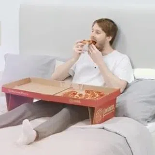 World’s 1st pizza box designed to eat pizza in bed! But it needs a cupholder.